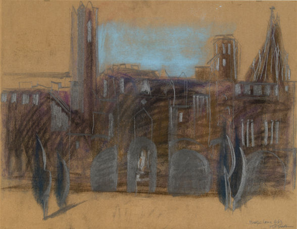 21 Barcelona, sign. Barcelona 4.63 K.Kunz, Bleistift und Pastell auf braunem Papier,