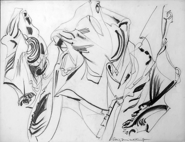 7 Fleisch in den Hallen, sign. Paris, Juni 61. K.Kunz, Bleistift, 50 x 65 cm, Motiv verwendet in den Ölgemälden WV 358, Bei den Hallen und WV 454, Paris Metro