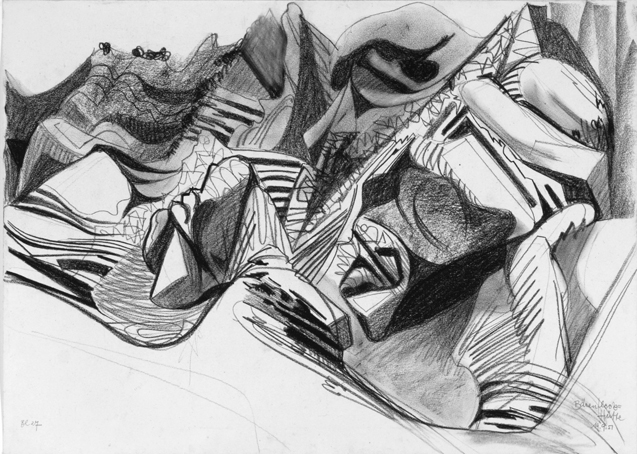 Blatt 27, sign. Bärenfleck-Hütte 19.9.51 K.Kunz, Bleistift/Kohle, 50,5 x 37 cm