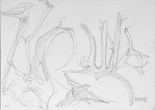 Blatt 6, sign. Bärenfleck-Hütte Sept.51 K.Kunz, Bleistift, 36 x 50,5 cm