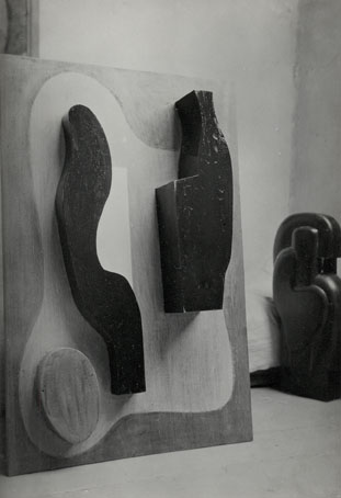 29 Holzrelief und Holzplastik, o.T., Juli 1933, Atelier-Photographie