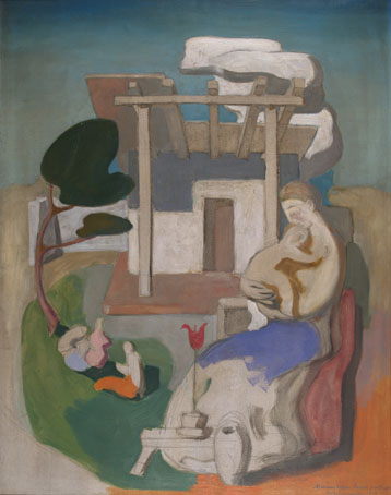 43 Mutter und Kind, Dezember 1935, Öl und Bleistift auf Leinwand