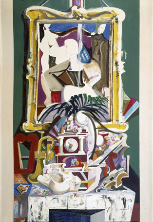199 Stillleben mit Bild und Uhr, 1955, Öl auf Hartfaser, 180 x 125 cm,