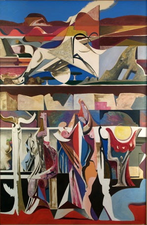 214 Landschaft, Juni 1955, Öl auf Hartfaser, 150 x 101 cm, sign. 6.55 K.Kunz