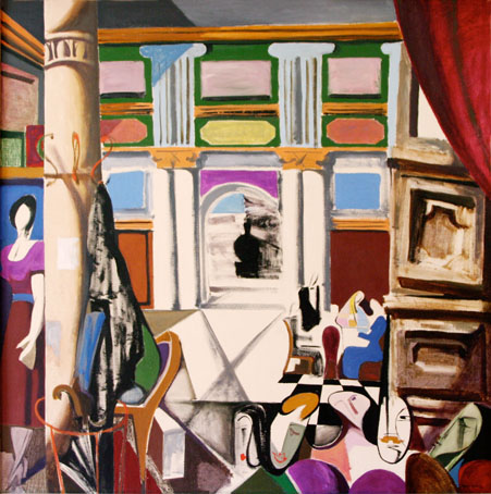 221 Im Wartesaal, Dezember 1955, Öl auf Hartfaser, 125 x 125 cm,