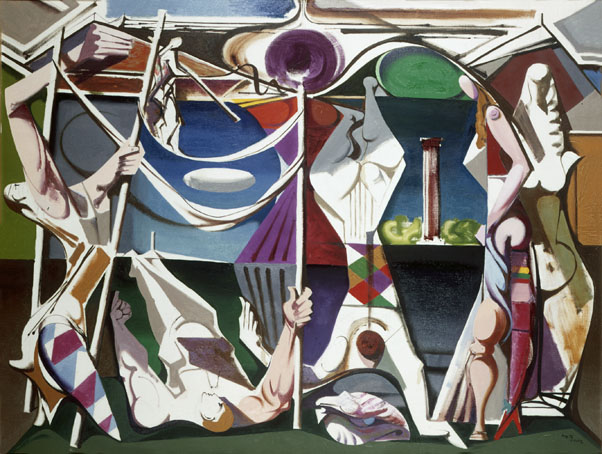 302 Artisten, August 1959, Öl auf Hartfaser, 100 x 130 cm, sign. Aug.59 K.Kunz