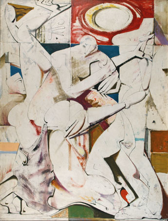 311 Häusliche Szene, 1960, Öl auf Hartfaser, 132,5 x 99,5 cm, sign. 60. K.Kunz
