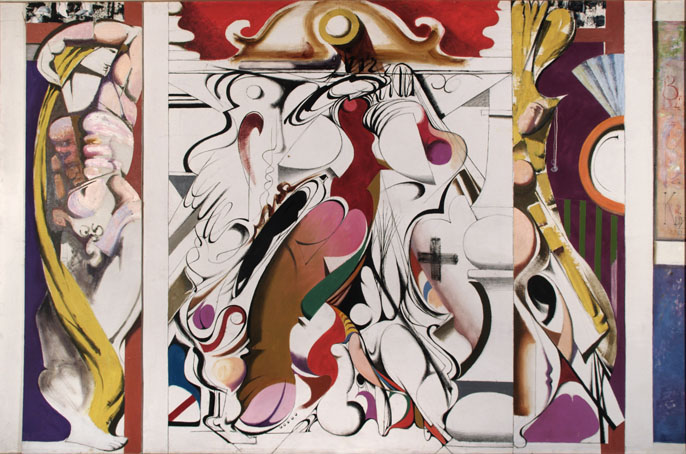 386 Triptychon mit männlichem Akt, April 1962, Öl mit Bleistift auf Hartfaser,