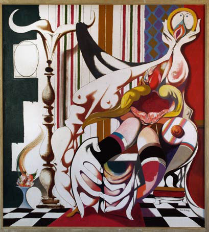 498 Interieur mit gehörntem Kleiderständer, August 1965, Öl auf Hartfaser,