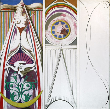525 Notre-Dame, Juni 1966, Öl auf Hartfaser, durch Holzleisten dreigeteilt,