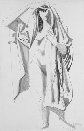 26  1958, weibl. Akt mit Tuch drapiert, sign. 2.58. K.Kunz, Bleistift/Papier, 50 x 32 cm