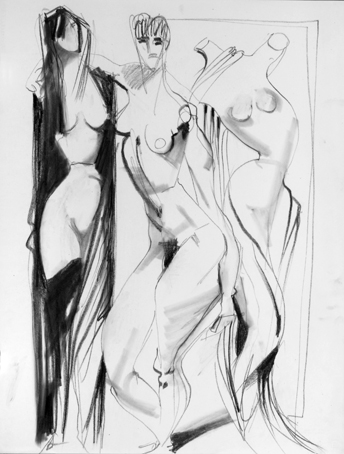 91 1963, Akt mit zwei Puppen, unsign. Bleistift/Kohle/Papier, 65 x 50 cm