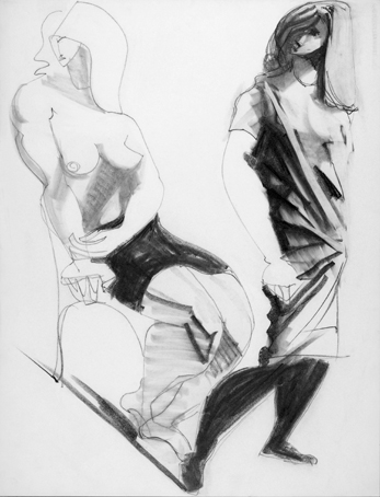 92  1963, zwei Frauen mit Halbakt, unsign., Bleistift/Papier, 65 c 50 cm