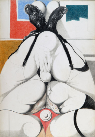 77 sign. 2.70, K.Kunz, Pyramide, Bleistift/Pastell, 73 x 51 cm