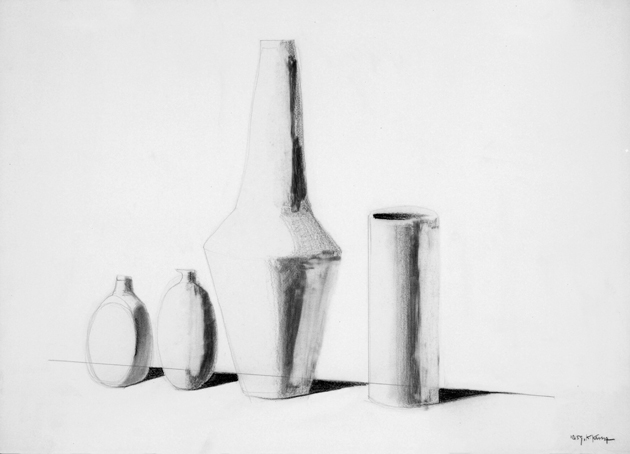 49 Stillleben mit Vasen, 1959, sign. 10.59 K.Kunz, Bleistift/Kohle, 45 x 63 cm