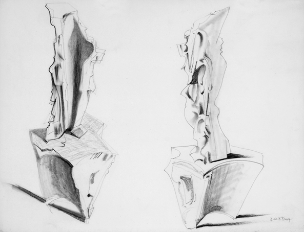 56 zwei Formstudien, 1960, sign. 2.60 K.Kunz, Bleistift, 50,5 x 65 cm