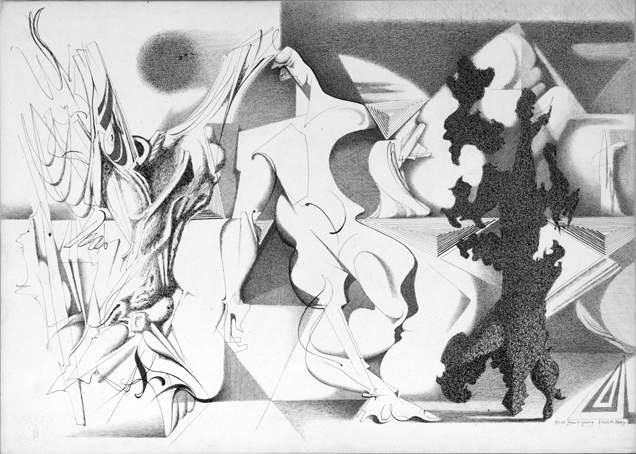 Blatt 34 zum 13. Gesang, sign. Nov.52 K.Kunz, Tusche
