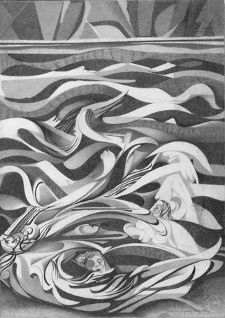 Blatt 36 zum 12. Gesang, sign. Dez.52 K.Kunz, Bleistift