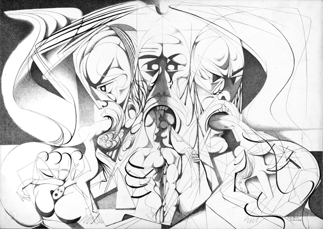Blatt 60 zum 34. Gesang, sign. 10.56 K.Kunz, Tusche