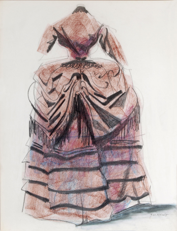 Kostüm 1, sign. 7.62 K.Kunz, Kohle und Pastell auf Papier, 65 x 50 cm