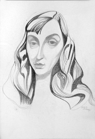 8 Portrait einer jungen Frau, sign. Dez.51 K.Kunz, Bleistift, 65 x 50 cm