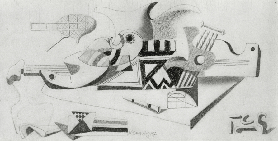 21 Wandbildentwurf für Musikhochschule Saarbrücken (WV 109), sign. K.Kunz Aug. 47, Bleistift auf Papier, 18 x 35 cm, nicht ausgeführt